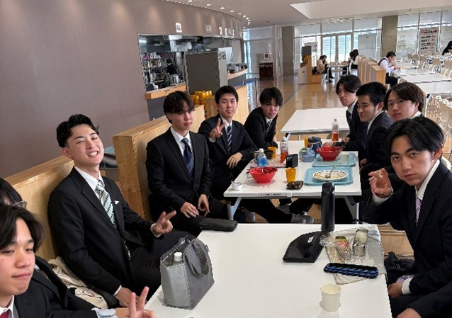 実習の前の楽しみといえば、なんといってもランチタイム!特別に高校の学食を利用させていただきました。普段は教室で仲良くお弁当などを食べている学生たちですが、この日は広々とした開放感あふれる学食での食事!