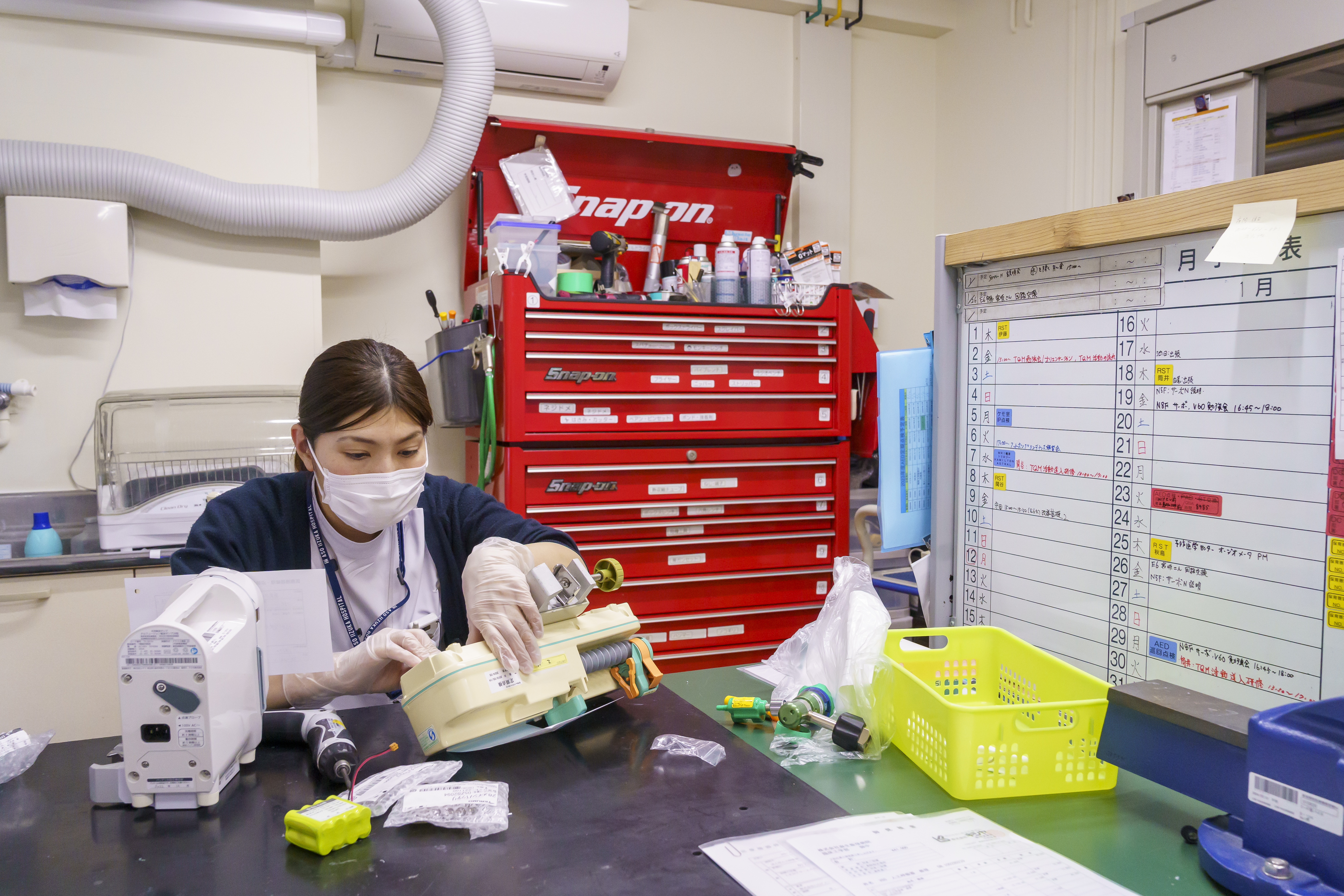 ドクターヘリをはじめ、ドクターカーなど社内の医療機器の保守点検を行います。