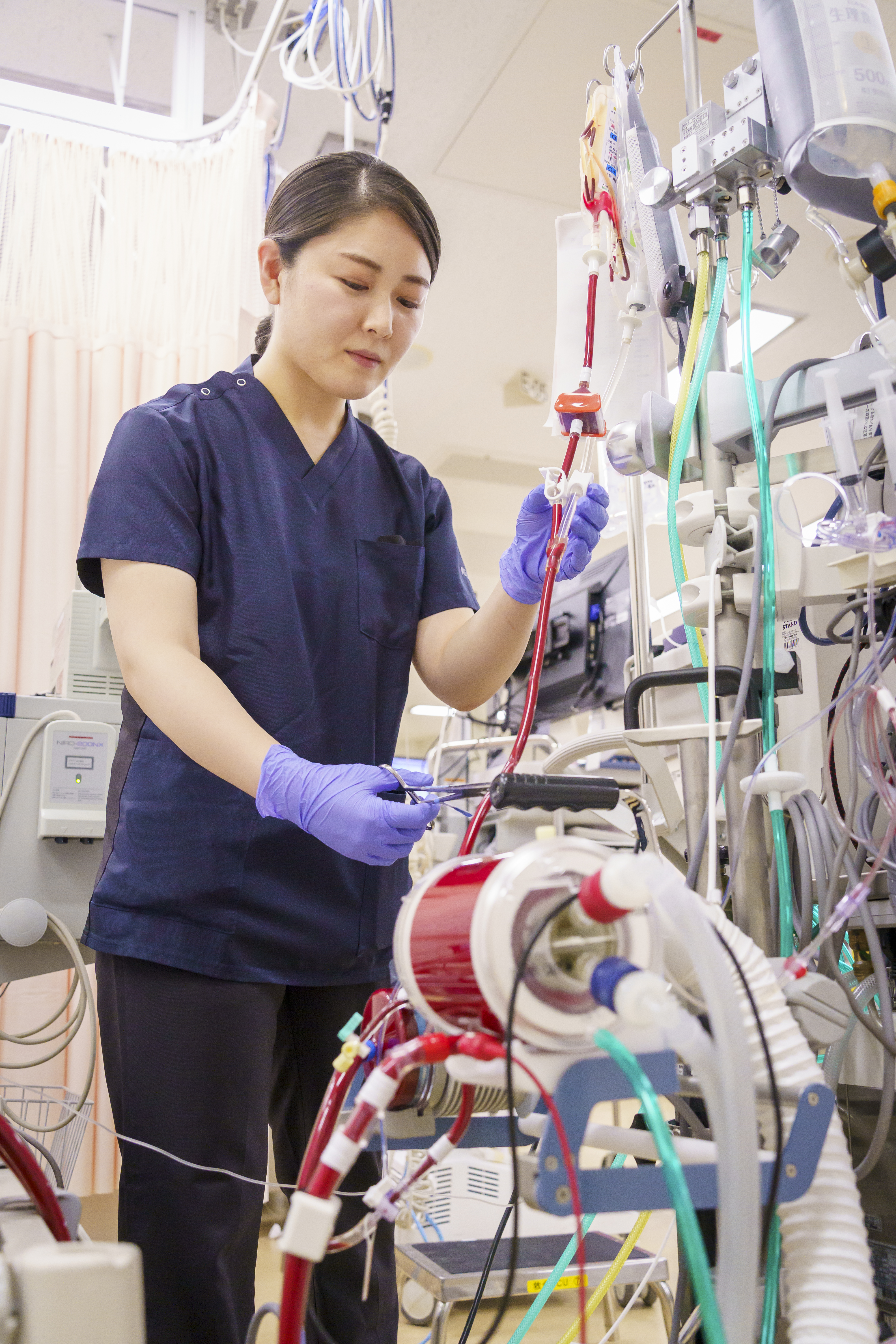 血液を清浄化する透析装置などを操作し、治療を手助けします。