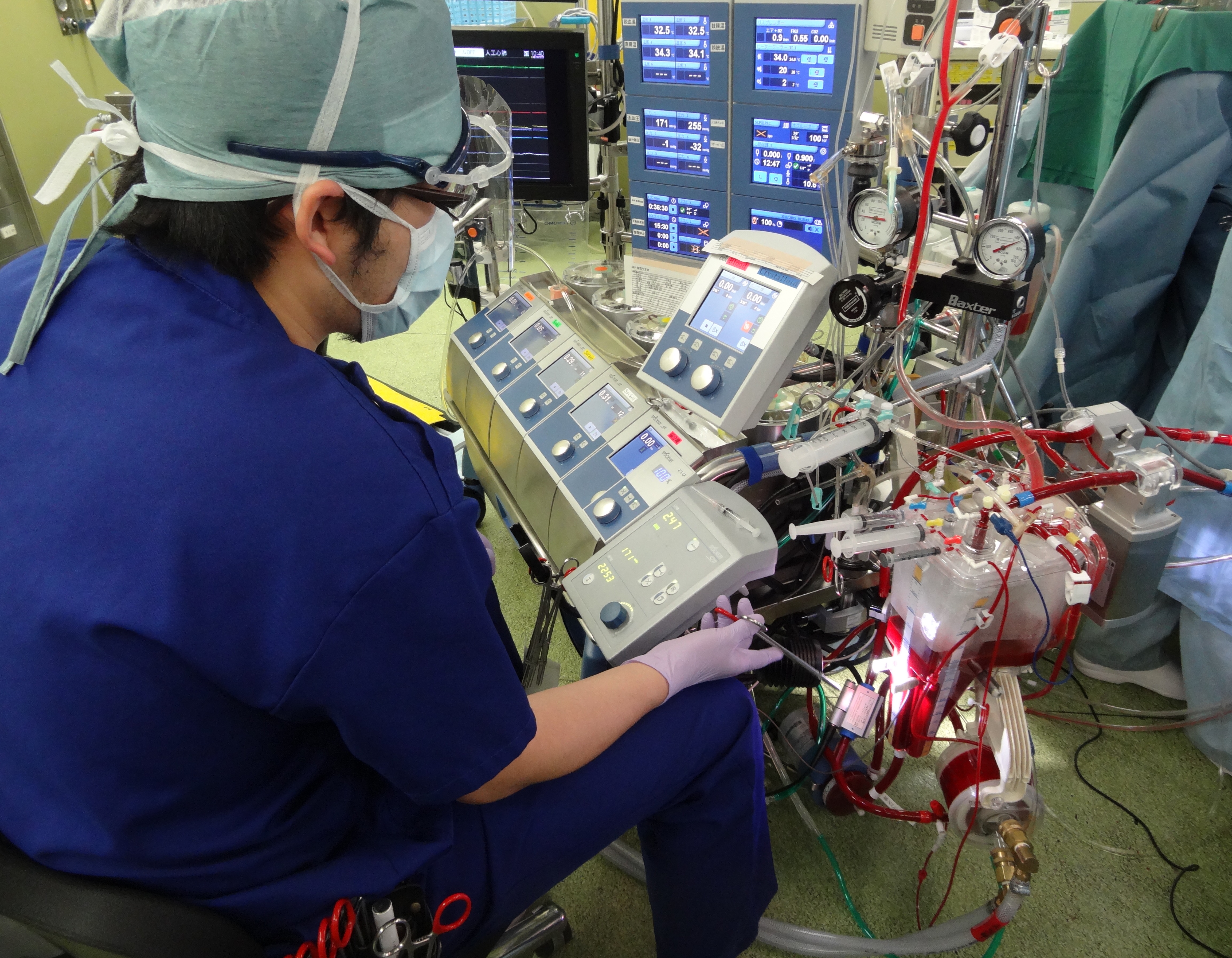 肺や心臓の代わりをする生命維持装置が重症患者の命を支えます。