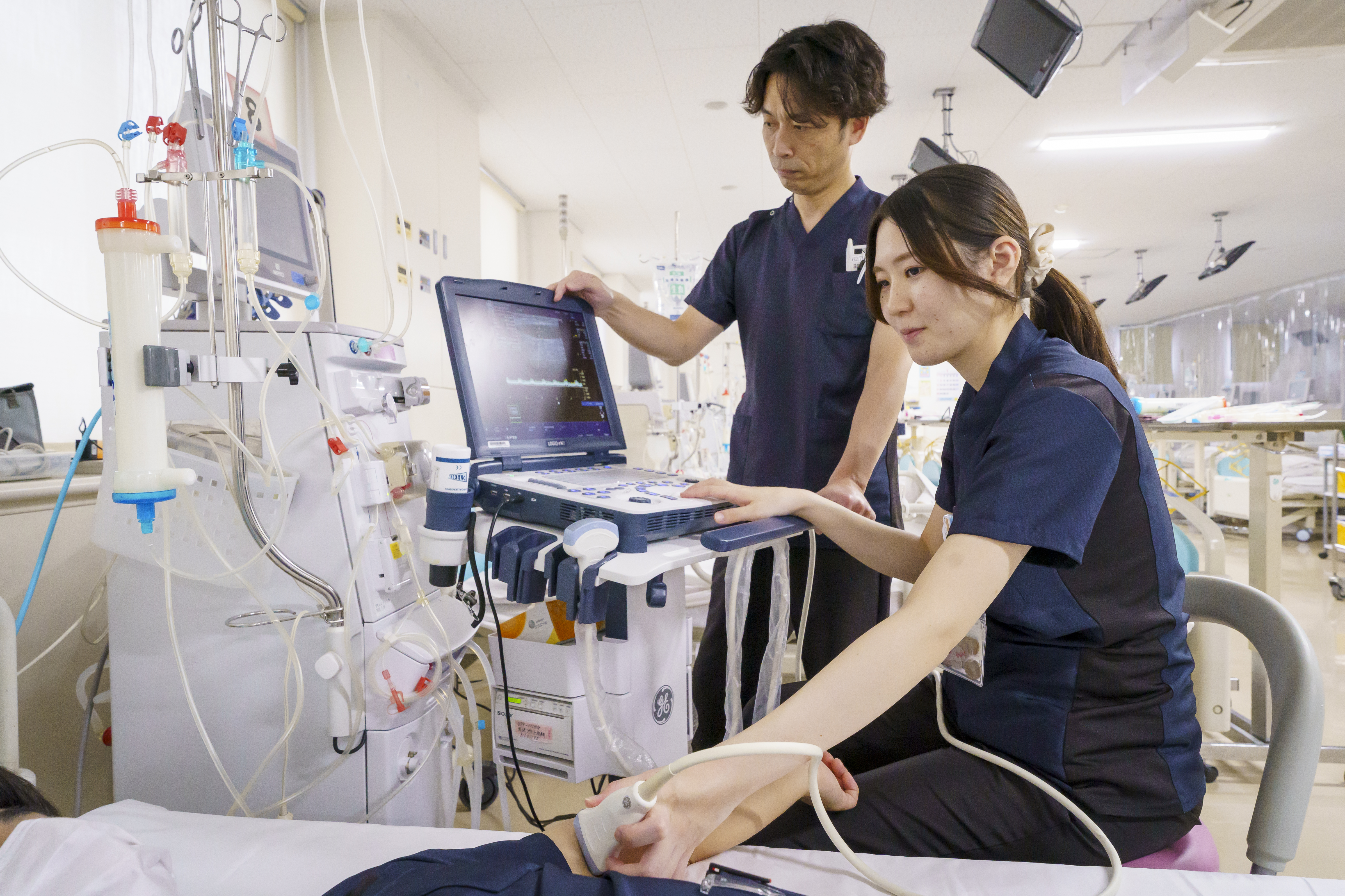 医療機器準備操作から患者様への穿刺・透析中のケアまで行います。